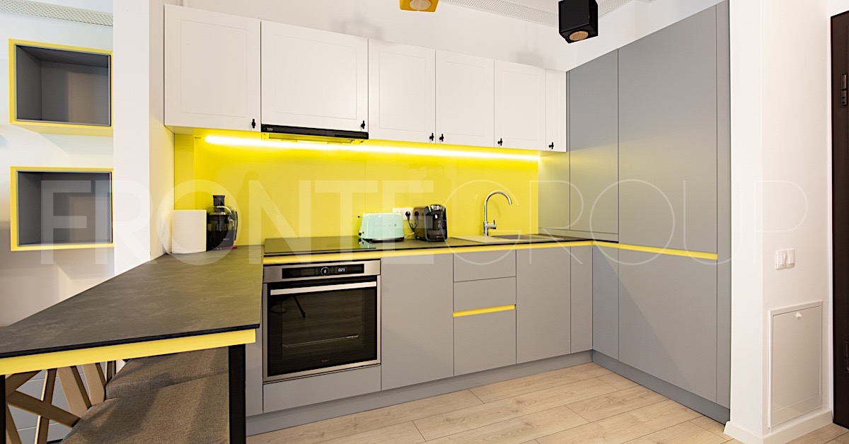 Bucatarie Gri Cu Galben